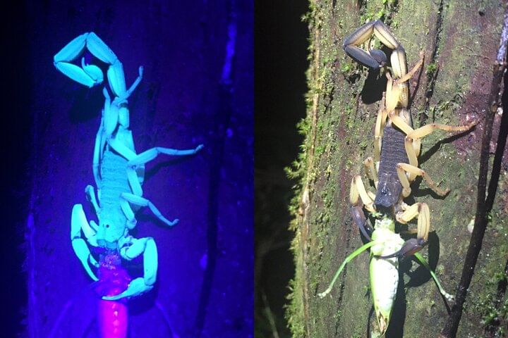 Joining on a night walk in Manuel Antonio area at Sukia Park offers a unique opportunity to experience the rainforest's nocturnal wonders. As darkness falls, the forest comes alive with a symphony of sounds and activities from its night-time inhabitants. Guided by experienced naturalists, you'll traverse safe trails equipped with flashlights and UV lights to spot a variety of creatures. Common sightings include tree frogs, nocturnal birds, snakes, spiders, and scorpions. With a bit of luck, you might also encounter nocturnal mammals such as anteaters, coatis, raccoons, deer, ocelots, opossums, armadillos, kinkajous, or sloths. These tours not only provide wildlife observations but also offer insights into the flora that sustains forest life. It's recommended to wear long pants and closed shoes, and to bring rain gear and a charged cellphone for pictures.